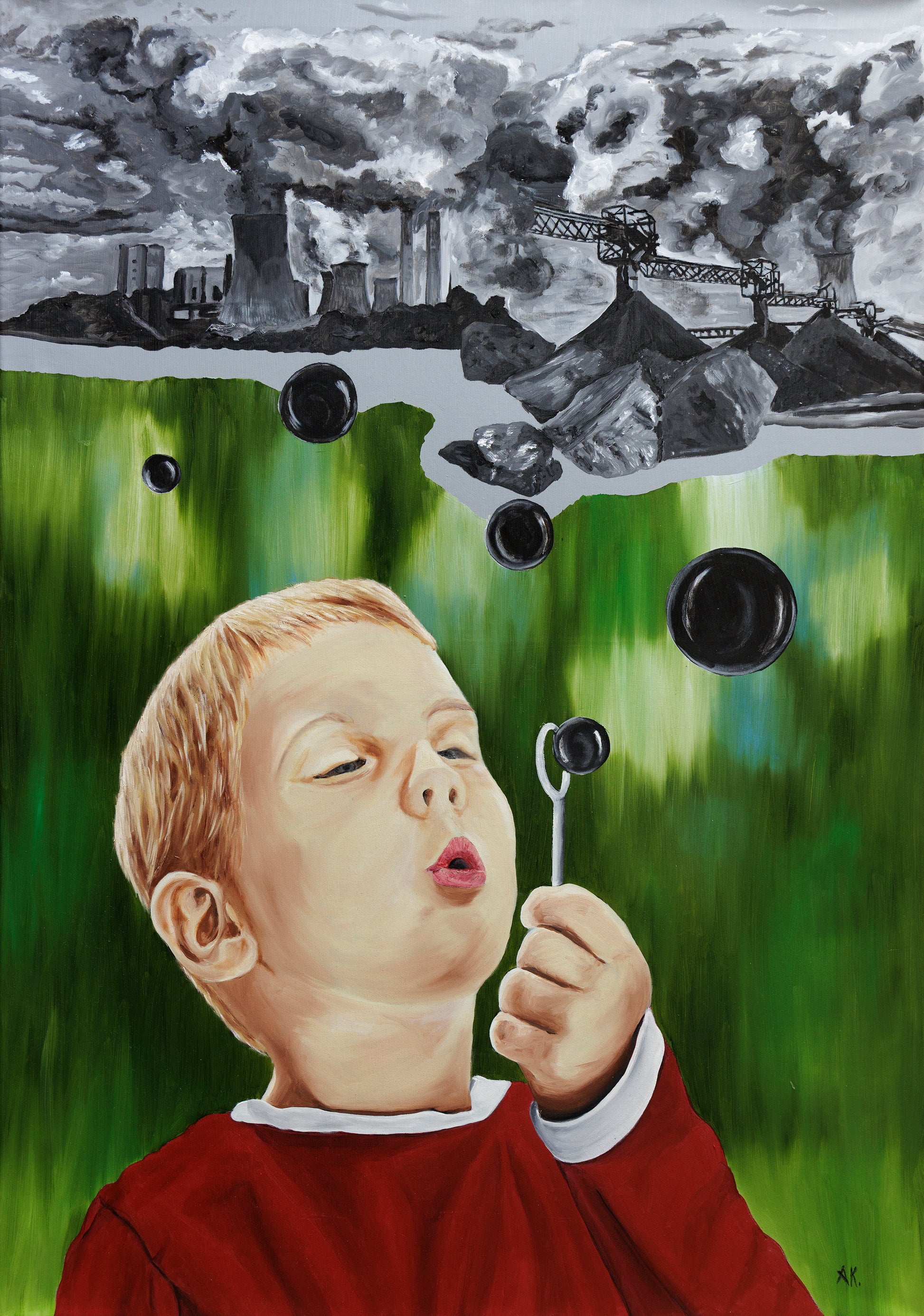Cette huile sur toile met en lumière les conséquences dévastatrices de l’utilisation du charbon comme combustible dans les centrales électriques en Pologne. À travers une composition sombre et évocatrice, je dénonce la pollution de l'air qui condamne les enfants à respirer des toxines dangereuses.